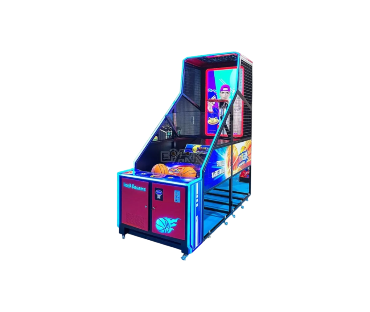 The gameplay is simple and competitive: players aim to score as many baskets as possible within a limited time, while the automatic ball return system keeps the game fast-paced. The lighting effects and modern graphics turn each round into a visually engaging experience, ideal for arcade centers, family entertainment venues, or areas dedicated to teenagers and adults.