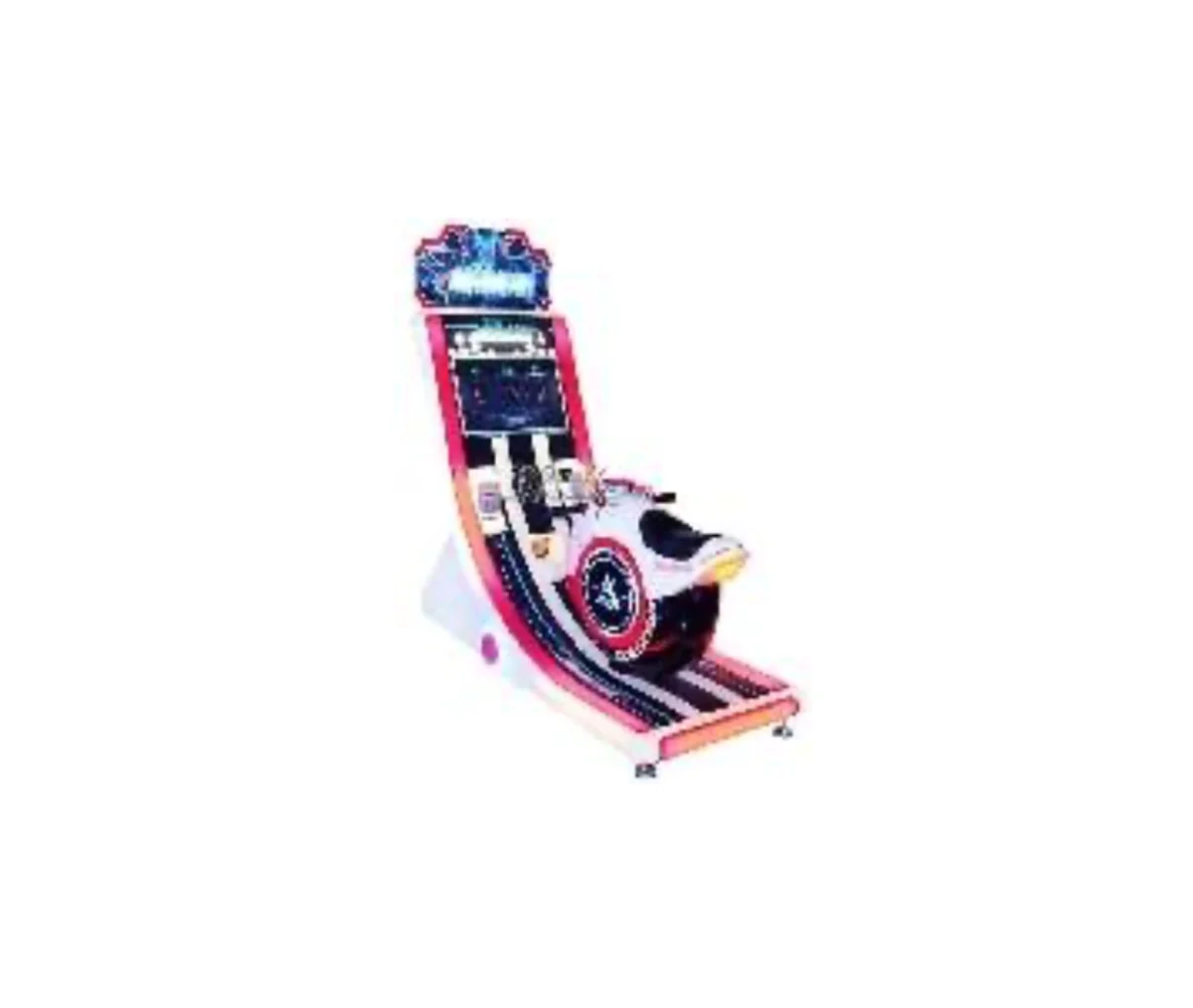 The game starts after inserting coins, and players can choose from multiple different tracks and scenes, each offering varying challenges and racing styles. The intuitive gameplay and spectacular visual effects encourage replay and competition, making this machine ideal for indoor entertainment centers, arcades or family fun spaces.